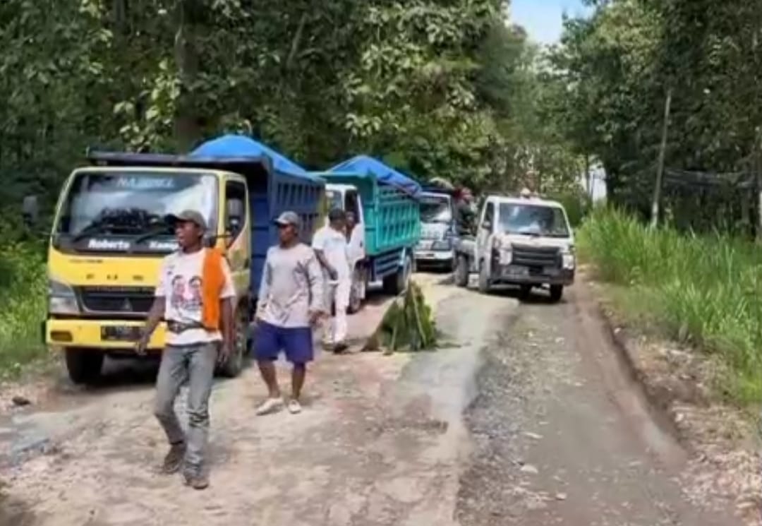 Truk-truk muatan baru grosok di jalan Cabak - Bleboh. (Cepuraya.id/Ist)
